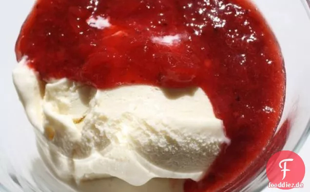 Die geheime Zutat (schwarzer Pfeffer): Süßes Sahneeis mit Erdbeer-schwarzer Pfeffersauce