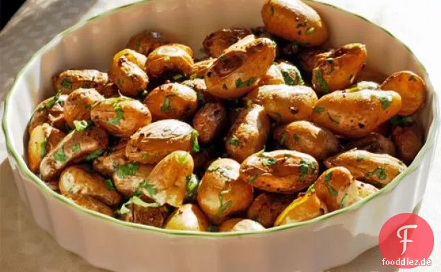 Gerösteter Knoblauch Fingerling Kartoffeln in Thymian und Butter